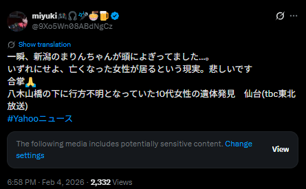 仙台の八木山橋で見つかった10代の女性のニュースに、「あれ、もしかして新潟で行方不明のまりんさんじゃ…?」という声が一気に広がりました。